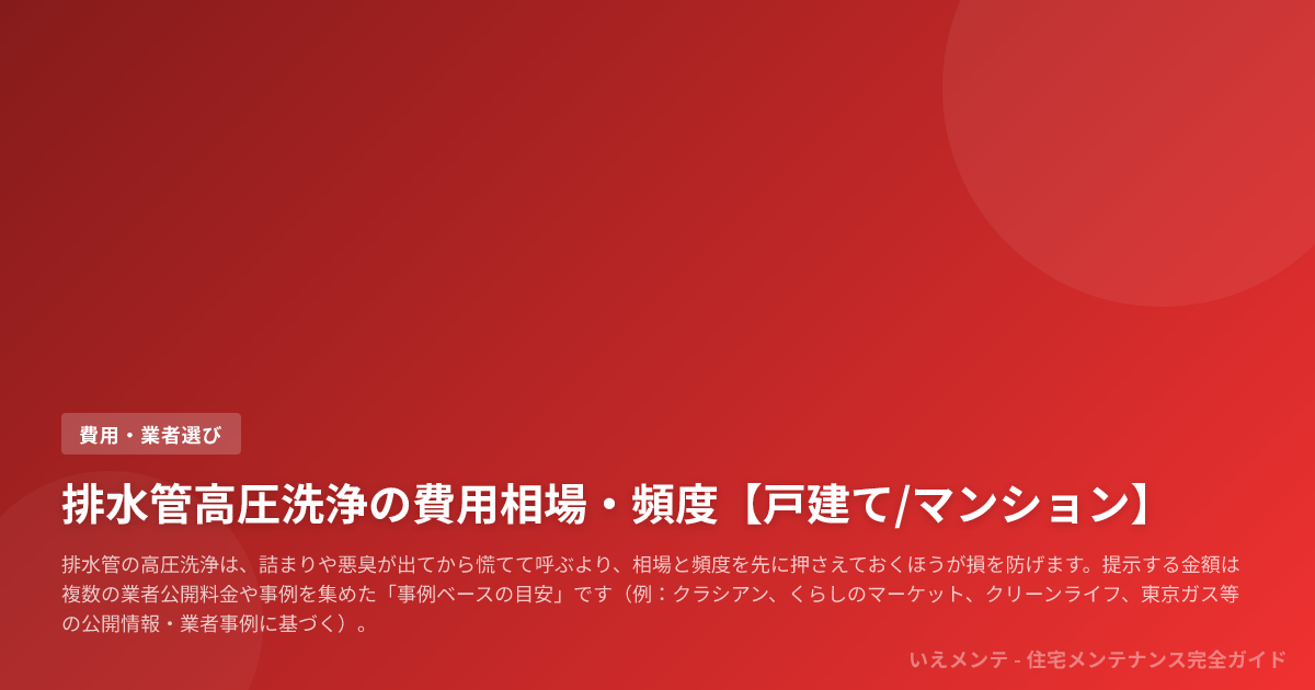 排水管の高圧洗浄は、詰まりや悪臭が出てから慌てて呼ぶより、相場と頻度を先に押さえておくほうが損を防げます。