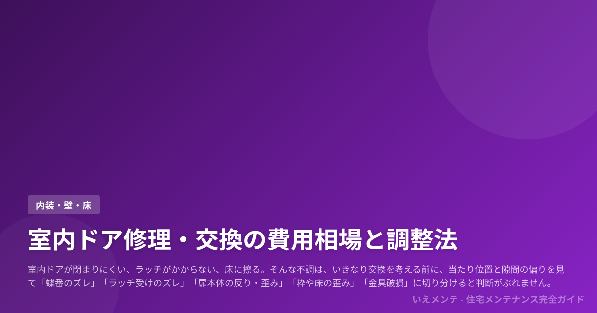 そんな不調は、いきなり交換を考える前に、当たり位置と隙間の偏りを見て「蝶番のズレ」「ラッチ受けのズレ」「扉本体の反り・歪み」「枠や床の歪み」「金具破損」に切り分けると判断がぶれません。