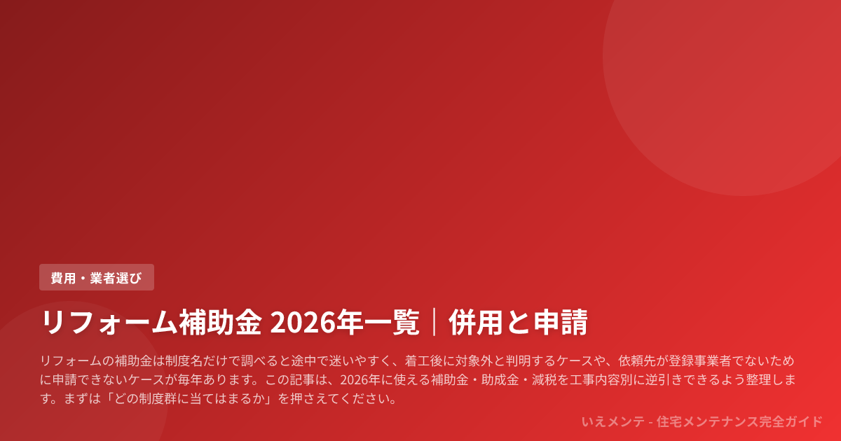 リフォーム補助金 2026年一覧|併用と申請