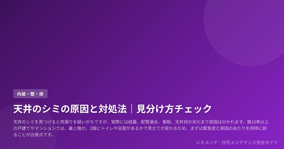 天井シミの再発防止は、内装をきれいに戻すことより、湿気の流れと水の侵入経路を建物の種類に合わせて管理することに本質があります。
