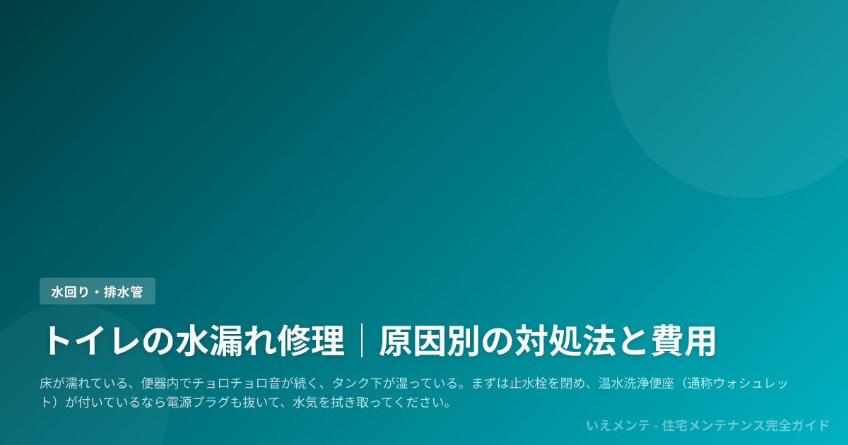 トイレの水漏れは、床が少し湿る程度でも放置の代償が重くなります。