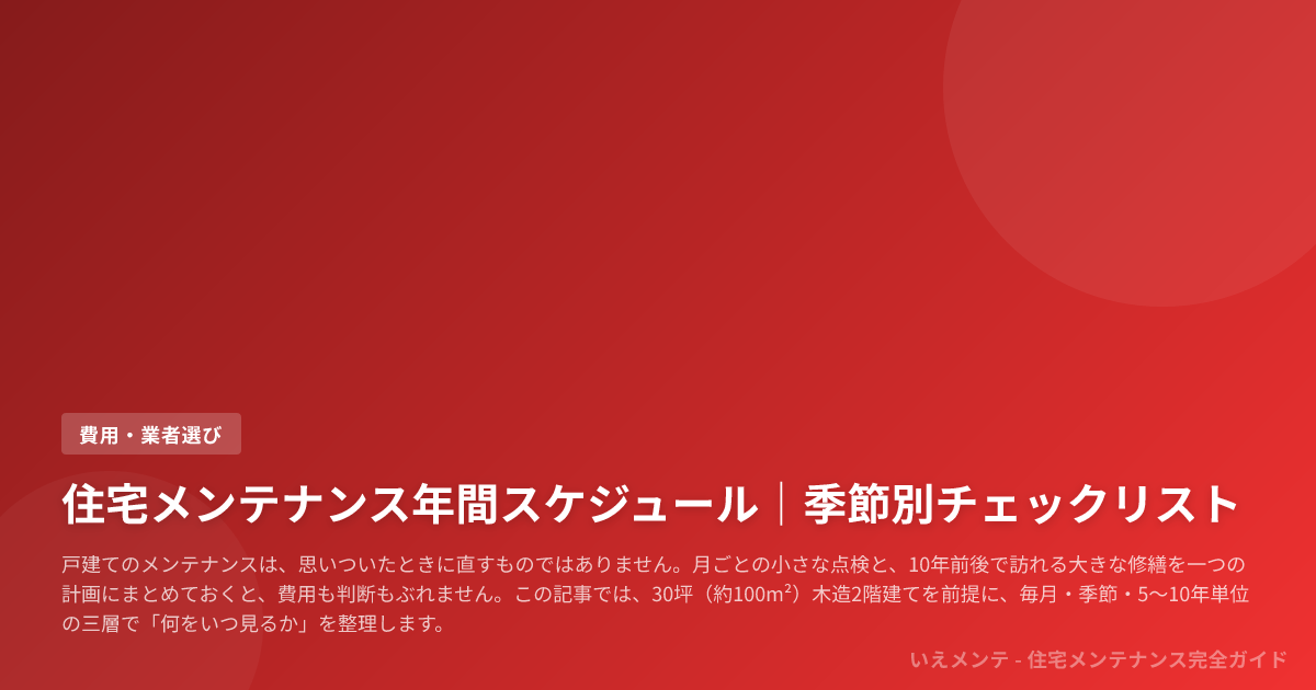 本記事は、一般的な木造戸建てを前提にした維持管理のガイドです。