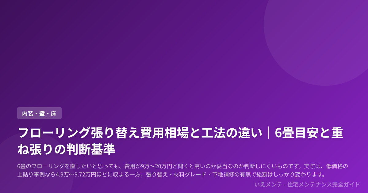 費用相場を把握したうえで「重ね張りで済むのか、張り替えるべきか」を迷っている人に向け、症状別の見分け方、工期、DIYの可否、マンション特有の注意点までを整理した内容です。
