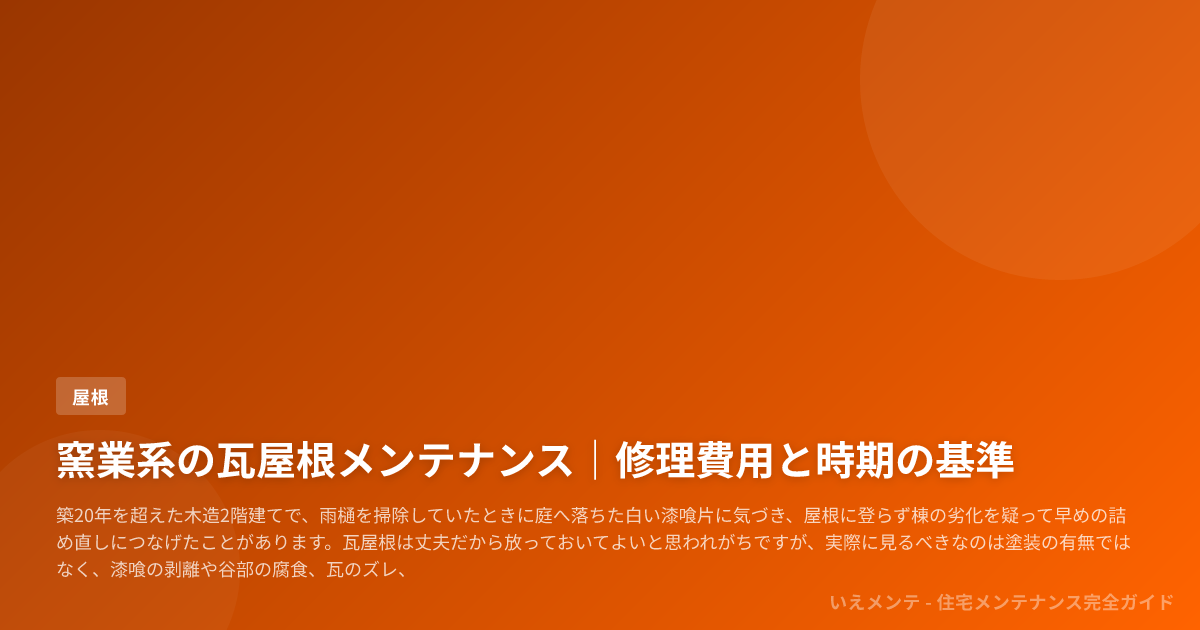 この記事は、瓦屋根のメンテナンス時期と費用を知りたい戸建ての所有者に向けて、築年数ごとの判断軸を整理するものです。