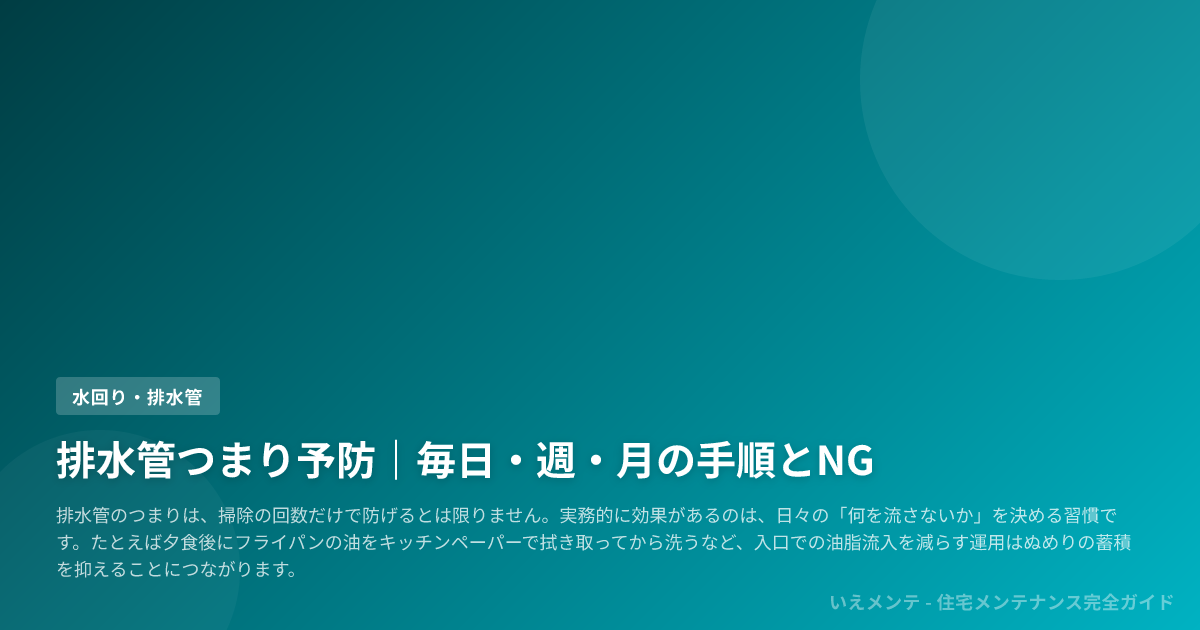 予防の軸は場所が違っても共通です。流さない・ためない・ためたら早めに落とす、この3つです。