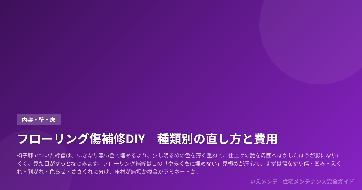 フローリング補修で迷ったら、まず傷の種類を見極め、そのあとに床材・仕上げ・床暖房の有無を確認し、そこでDIYか見積もり依頼かを切り分けてください。