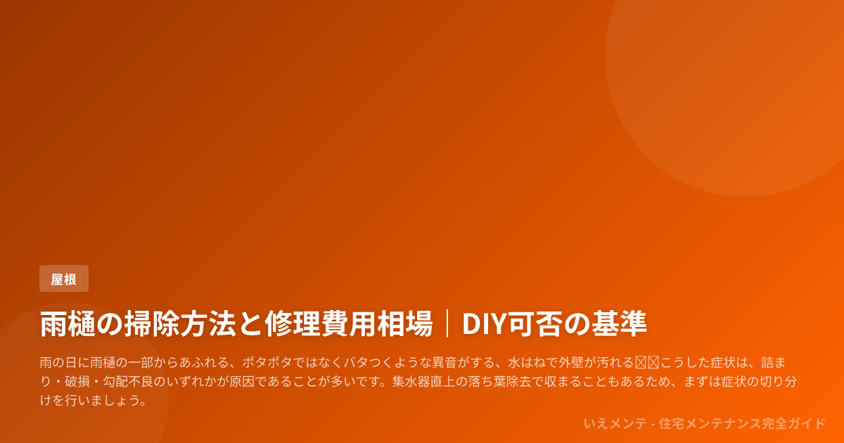 この記事は、築10〜25年の戸建てで雨樋の不調が気になっている方に向けて、症状の切り分けからDIYで触れてよい範囲、業者に任せるべき工事の線引きまでを整理するものです。